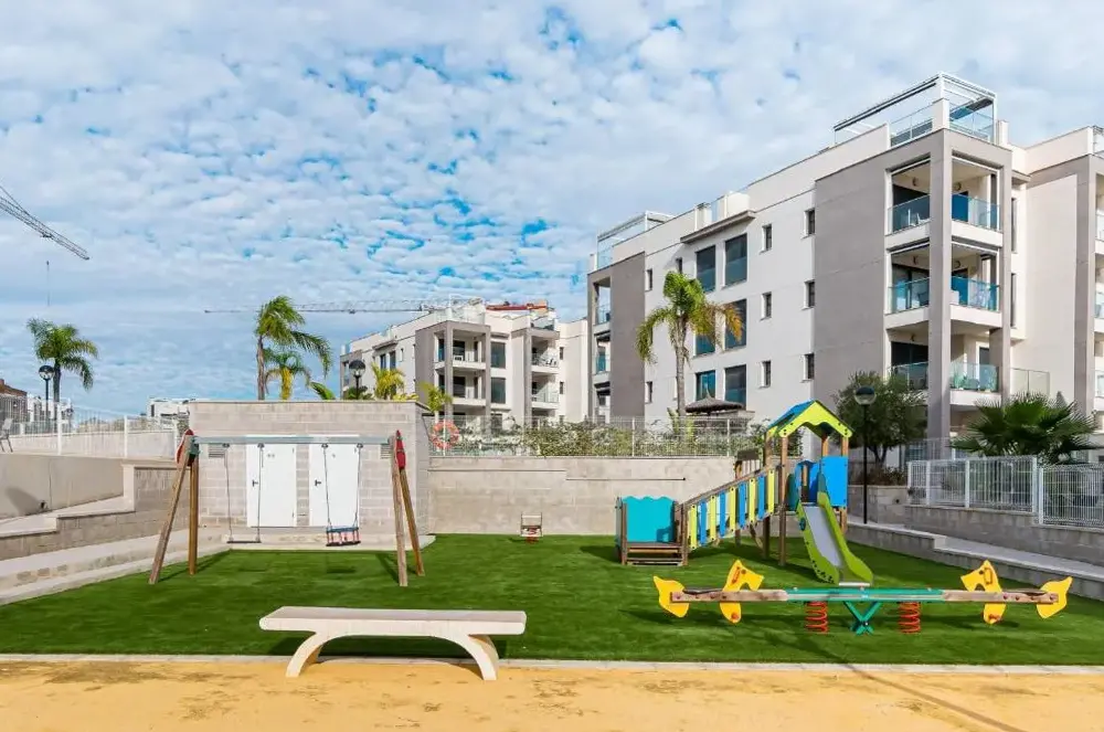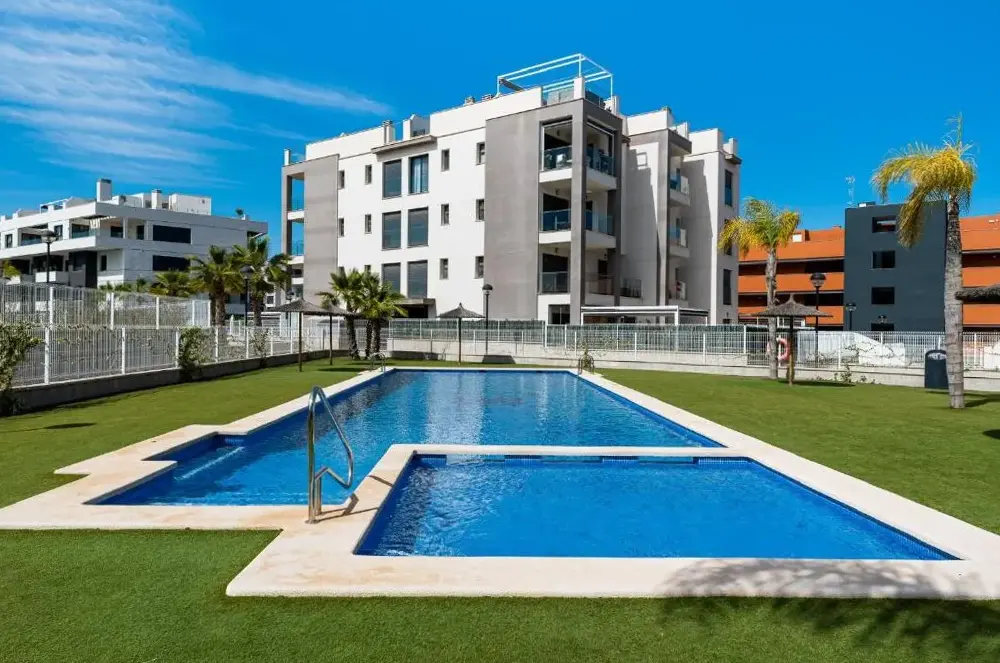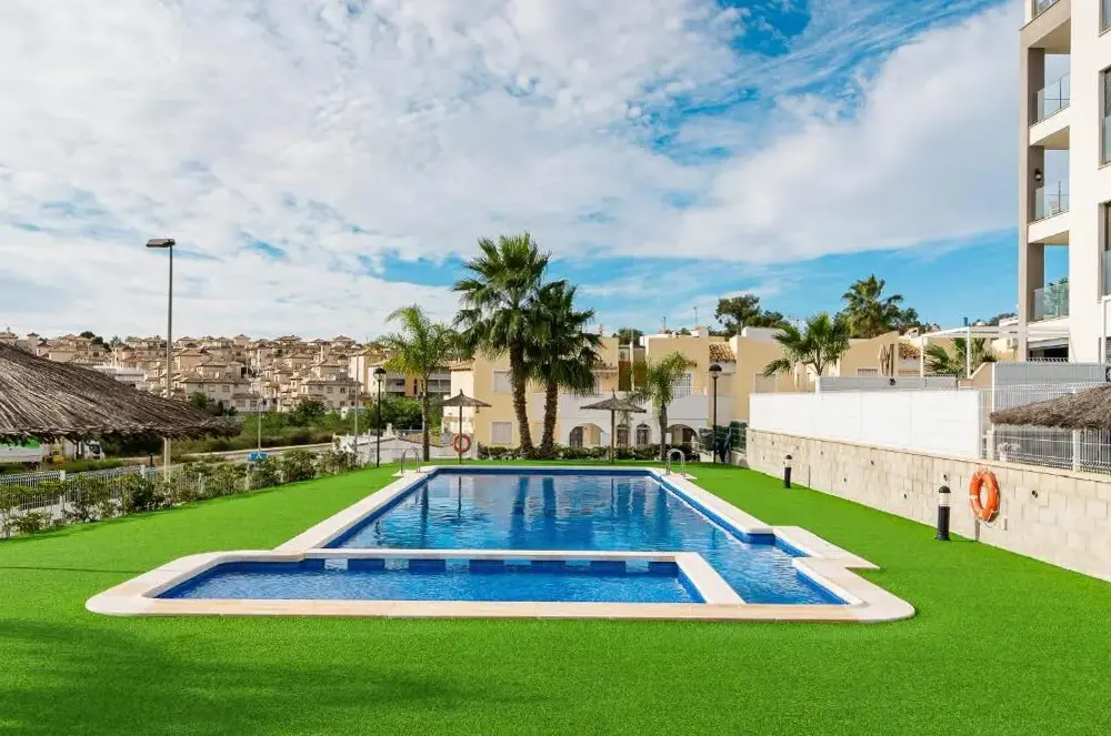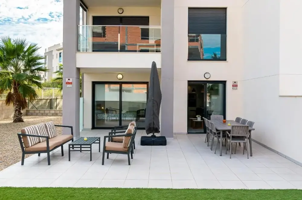 Spacious Accommodations: Apartamento Luxury Valentino Golf in Orihuela offers a spacious apartment with two bedrooms and two bathrooms. The living room includes a sofa and TV, ensuring comfort for all guests. Outdoor Amenities: Guests can enjoy a year-round outdoor swimming pool, terrace, and garden. The terrace provides an ideal space for relaxation, while the garden offers a peaceful retreat. Modern Facilities: The apartment features air-conditioning, free WiFi, and a fully equipped kitchen with a refrigerator, microwave, dishwasher, and coffee machine. Additional amenities include a washing machine, patio, and outdoor dining area. Convenient Location: Located 31 mi from Region de Murcia International Airport, the property is a 15-minute walk from Villamartin Plaza. Nearby attractions include Las Colinas Golf Course (3.1 mi) and Mar Menor Golf Resort (22 mi). Highly rated for its swimming pool.